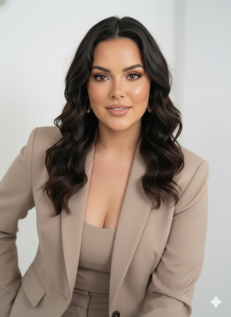 Generate a professional upper-body portrait with a refined, confident posture: the subject slightly leaning forward from the waist, shoulders subtly angled, chest gently lifted, and neck elongated for an elegant, professional look.